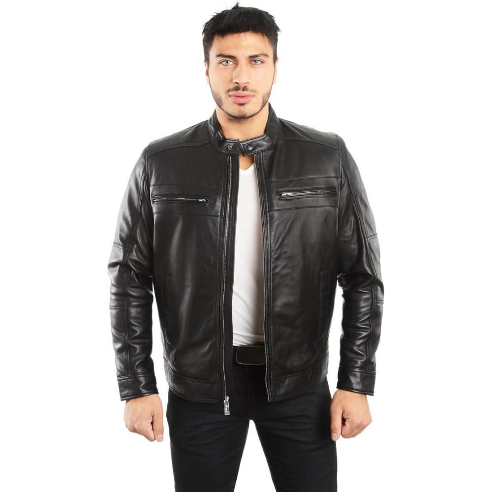 REED EST. 1950 Men’s Genuine Lambskin Leather Biker Jacket(Black)