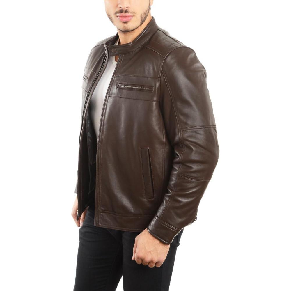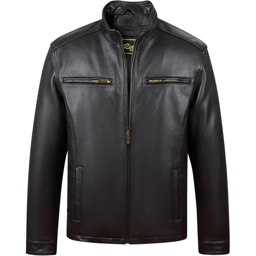 REED EST. 1950 Men’s Genuine Lambskin Leather Biker Jacket(Brown)
