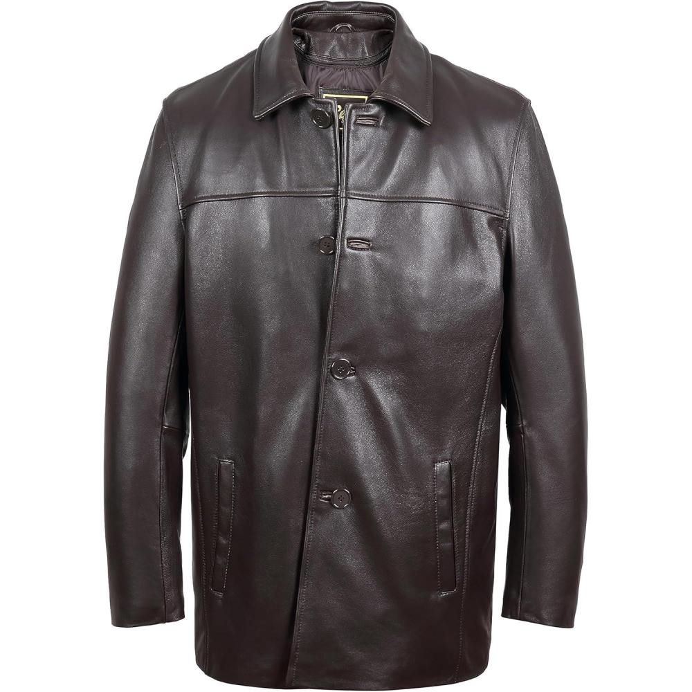 REED EST. 1950 Men’s Jacket Genuine Lambskin Leather Four Button Car Coat(Brown)