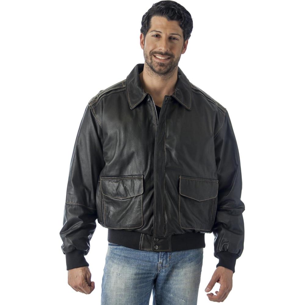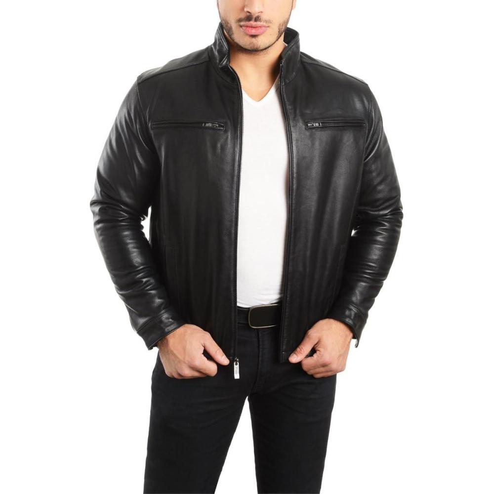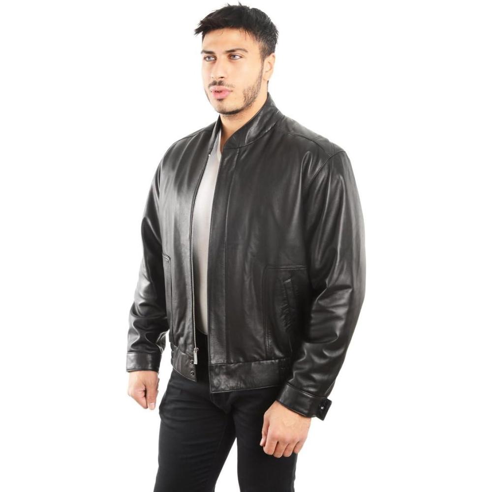 REED EST. 1950 Men’s Coat Genuine Lambskin Leather Stand UP Collar S5Z Bomber Jacket(Black)