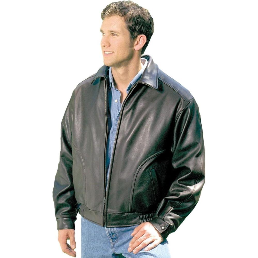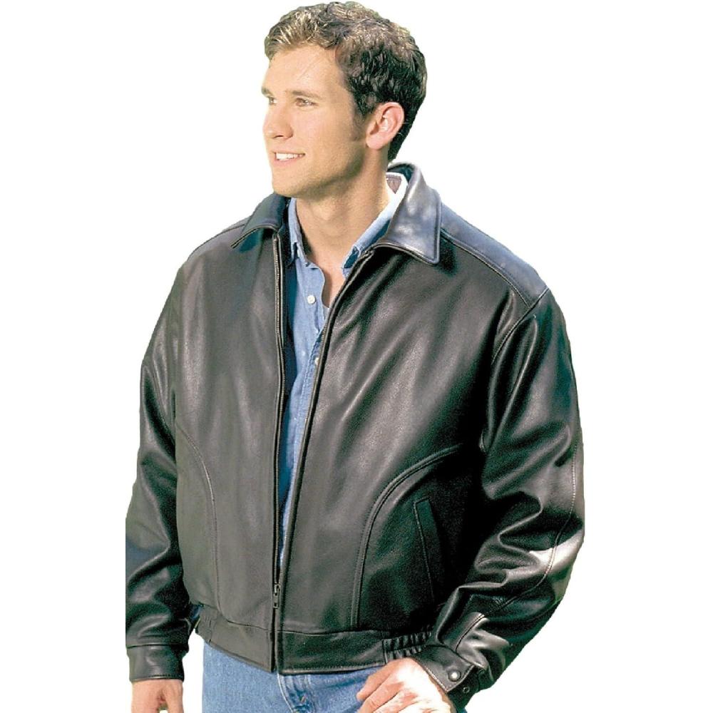 REED EST. 1950 Men’s Luxury All American Bomber Jacket – Union Made in USA Naked Cowhide Leather Classic Fit(Black)