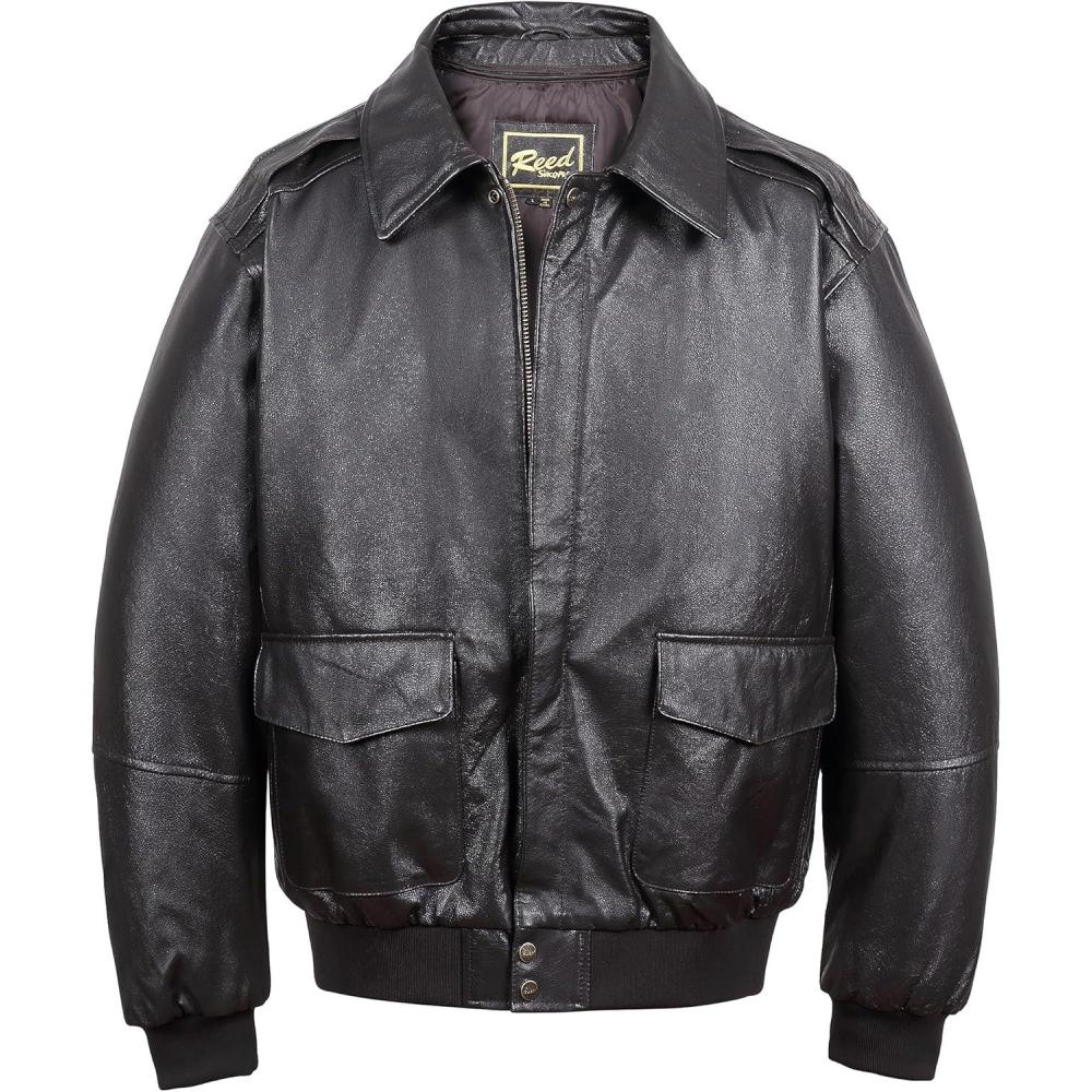 REED EST. 1950 Men’s Luxury Aviator Bomber Jacket – Genuine Leather, Durable Craftsmanship, Timeless Design(Black)