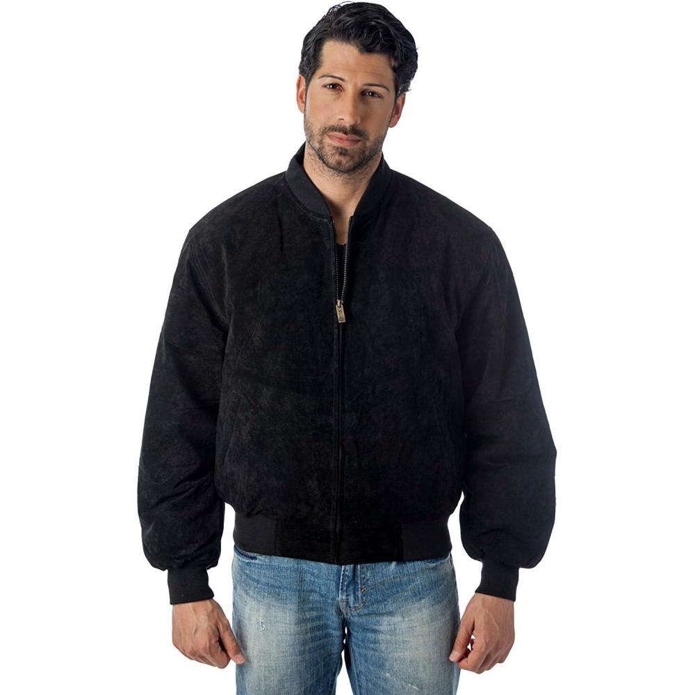 REED EST. 1950 Men’s Luxury Suede Leather Baseball Jacket – Premium Soft Suede with Smooth Interior Lining(Black)