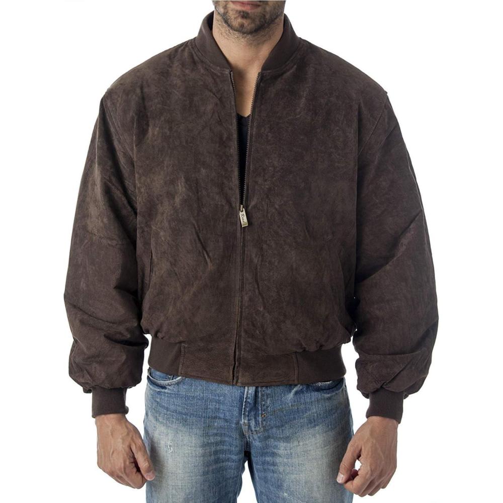 REED EST. 1950 Men’s Luxury Suede Leather Baseball Jacket – Premium Soft Suede with Smooth Interior Lining(Brown)