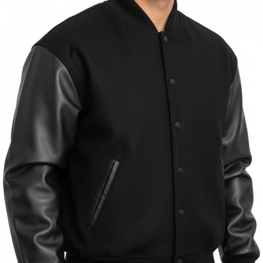 REED EST. 1950 Men’s Jacket Genuine Lambskin Leather Stand UP Collar Winners Coat(Black)