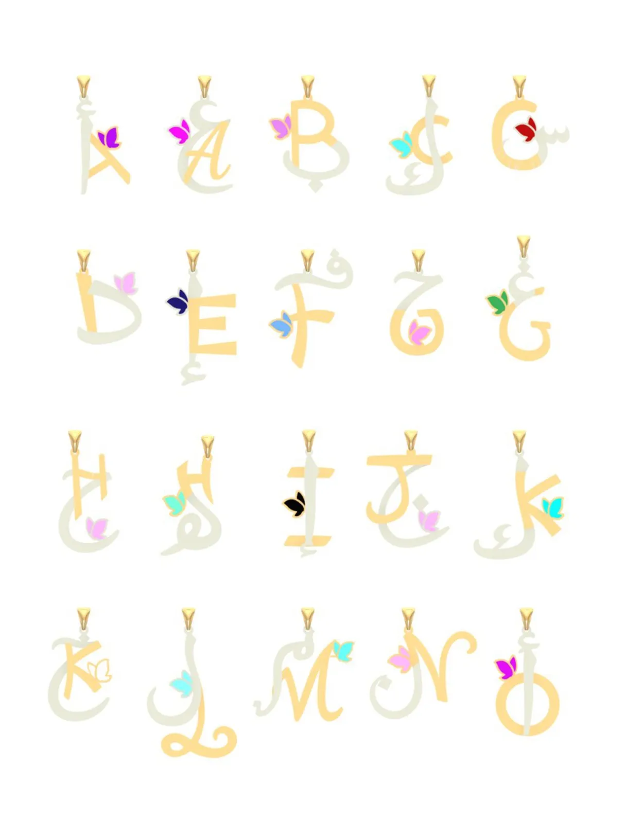18K Gold Arabic–English Fusion Initial Pendant Necklace