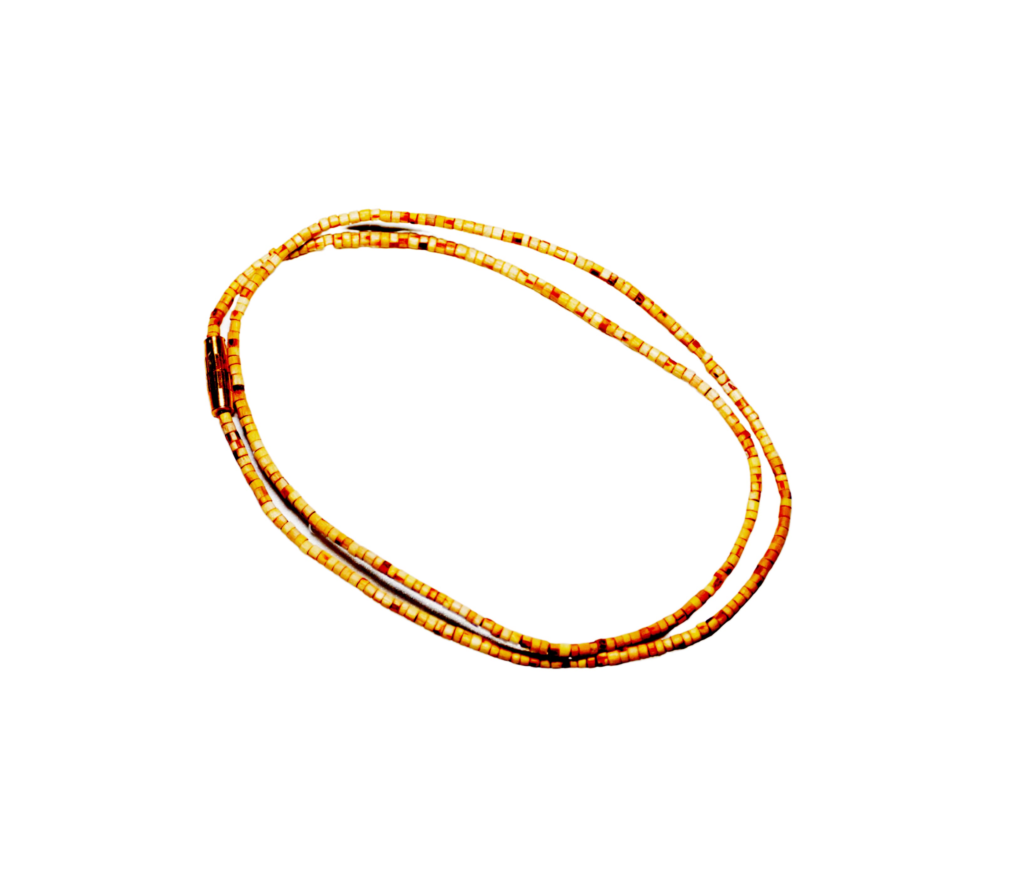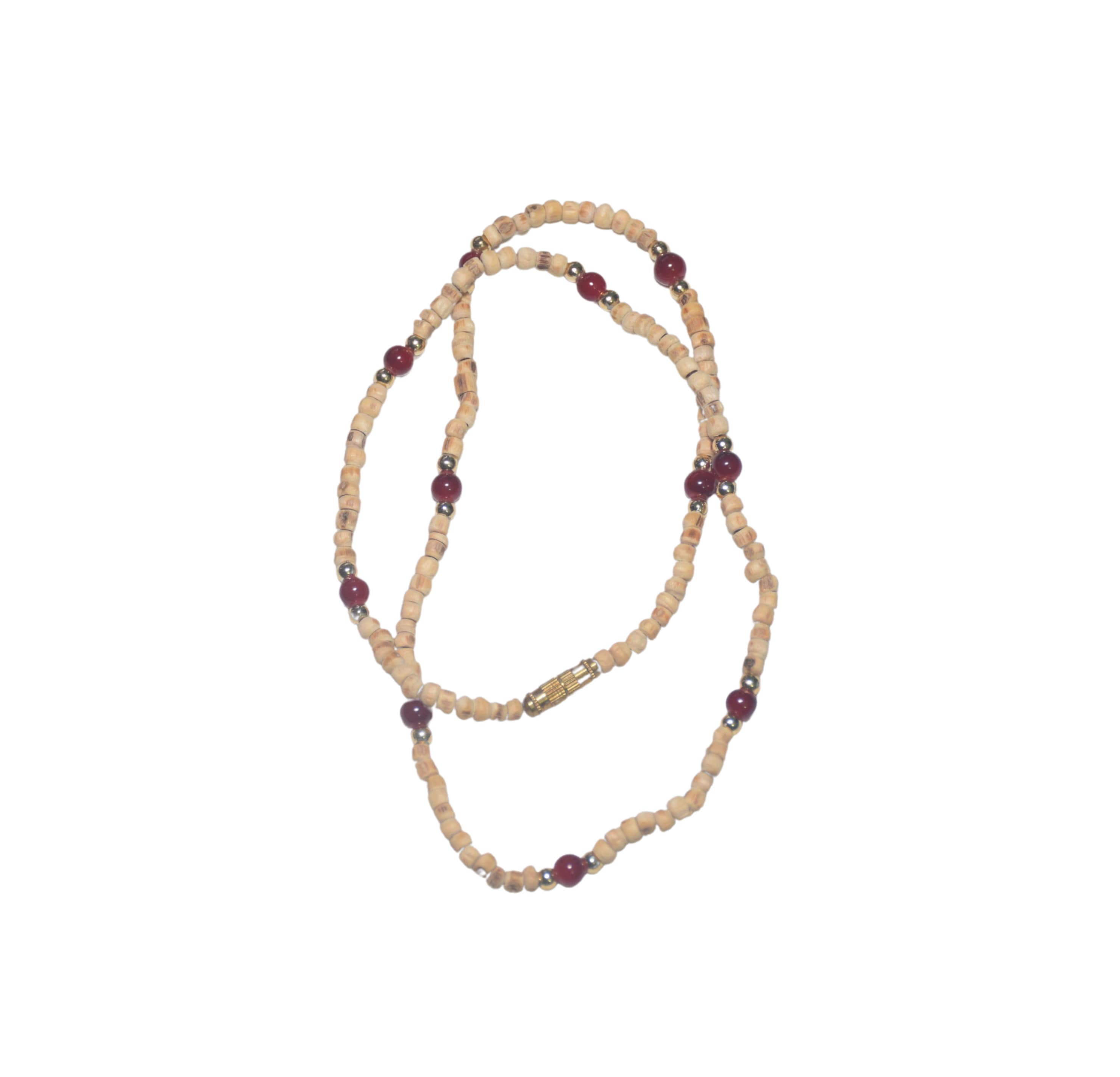 Wood Tulsi Kanthi with Red and Golden Beads for Neck – 2 Rounds