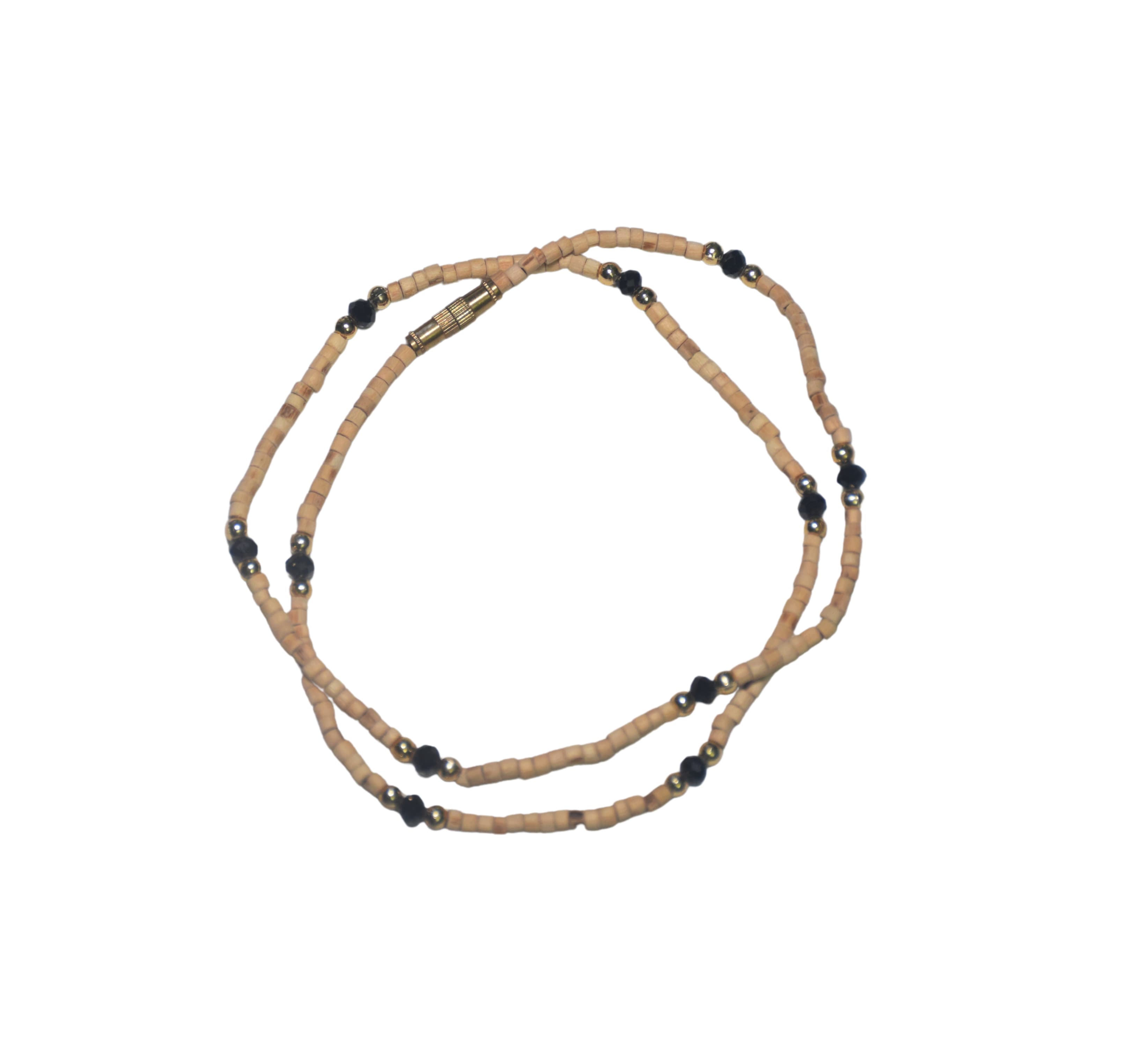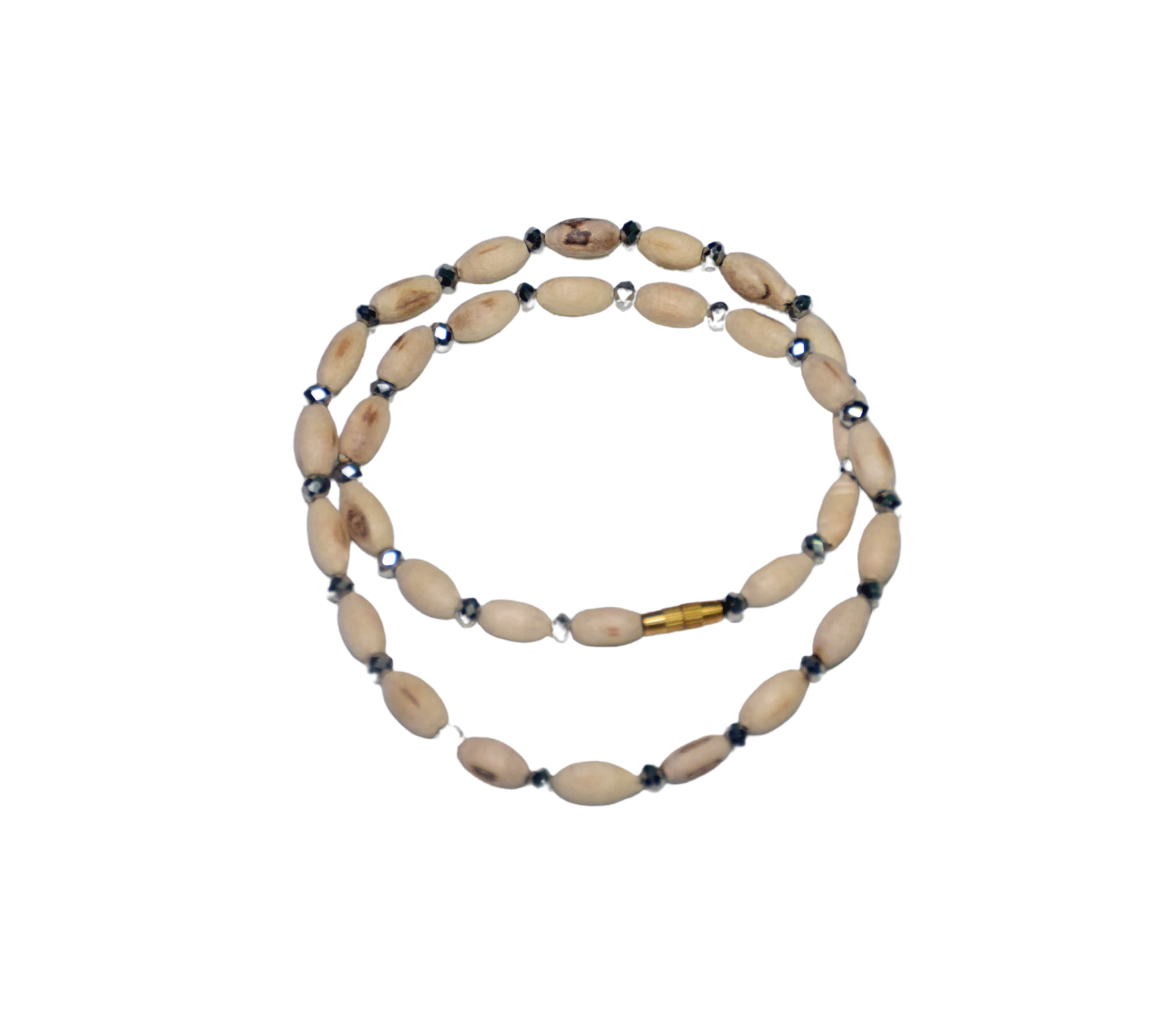 Wood Tulsi Kanthi with Black and Golden Beads for Neck – 2 Rounds