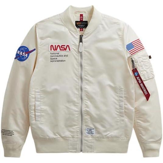 Alpha Industries L-2B NASA Gen II Flight Jacket – Lightweight Water-Resistant Bomber with NASA Logo Patches & Utility Sleeve(Off-white)