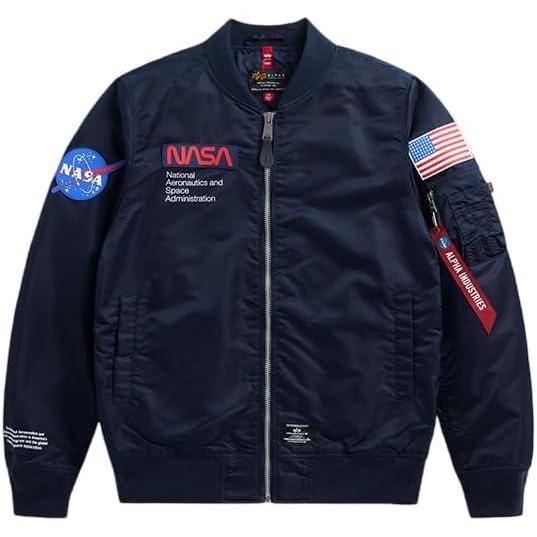 Alpha Industries L-2B NASA Gen II Flight Jacket – Lightweight Water-Resistant Bomber with NASA Logo Patches & Utility Sleeve(Replica Blue)